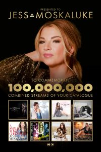 Last night, Jess Moskaluke was presented with a milestone award for earning 100 Million catalogue streams at her sold-out Mapdot Tour stop in Regina, SK. Congratulations to Jess on this incredible achievement! Watch the video below.